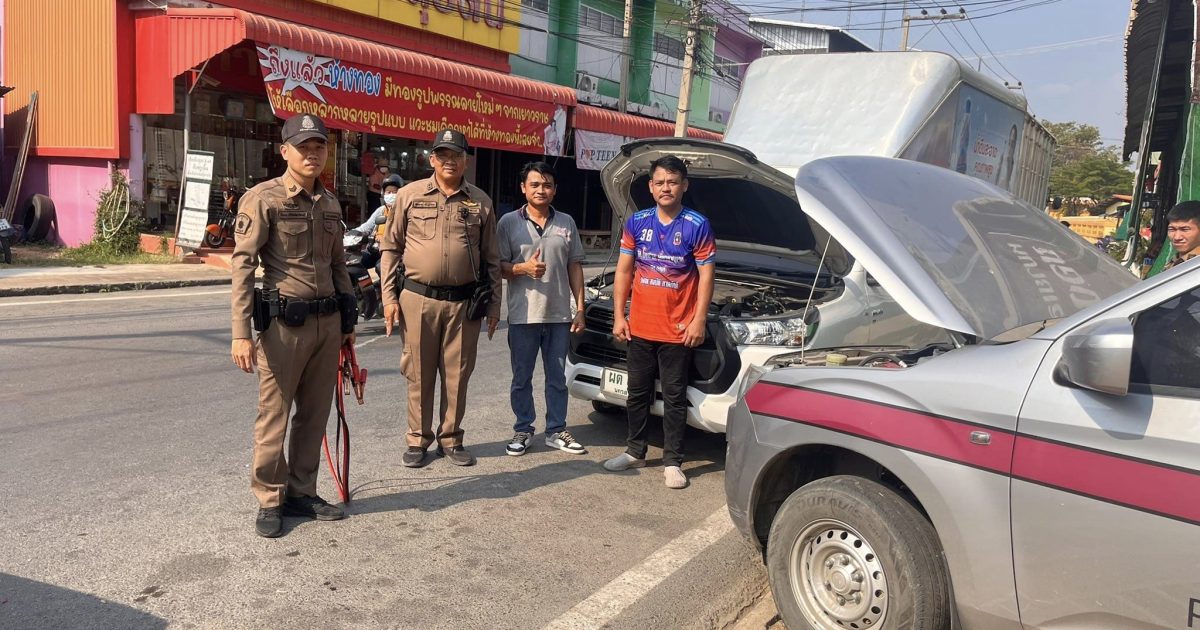 ร.ต.ท.สมชาย พันธุ์เขียน รอง สว.(ป)สภ.โกรกพระ ร้อยเวร 20 พร้อมสายตรวจรถยนต์ให้ความช่วยเหลือประชาชนรถยนต์(เครื่องยนต์สตาร์ทไม่ติด) สาเหตุแบตเตอรี่ไฟไม่พอสตาร์ท สายตรวจรถยนต์ได้ให้ความช่วยเหลือแก้ไขพ่วงแบตเตอรี่ สามารถเดินทางต่อไปได้