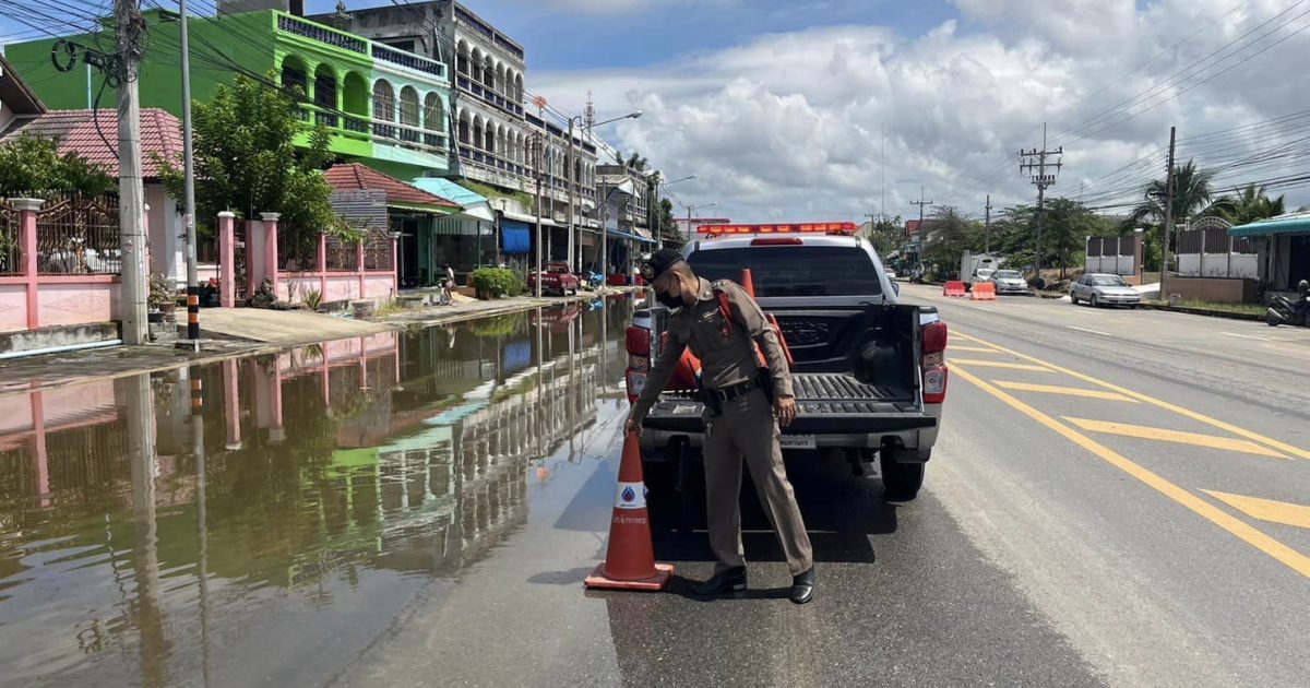 อำนวยความสะดวกการจราจรบริเวณที่มีน้ำท่วมขัง 8 ตุลาคม 2565 โดย admin / ข่าวประชาสัมพันธ์,ข่าวกิจกรรม ร.ต.อ.ภูไทย เชื้อชัย รอง สวป.สภ.โกรกพระ พร้อมสายตรวจรถยนต์ วางกรวยบริเวณพื้นที่ที่มีน้ำท่วมถนน เพื่ออำนวยความสะดวกการจราจร Facebook iconFacebookTwitter iconTwitterLINE iconLine