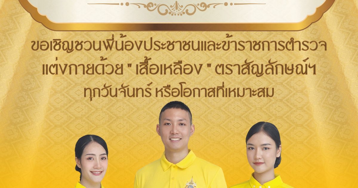 เนื่องในปีมหามงคล พระบาทสมเด็จพระเจ้าอยู่หัวทรงเจริญพระชนมพรรษา 6 รอบ 72 พรรษา ขอเชิญชวนพี่น้องประชาชนและข้าราชการตำรวจ แต่งกายด้วยเสื้อเหลือง ตราสัญลักษณ์ ฯ ทุกวันจันทร์ หรือโอกาสที่เหมาะสม เพื่อร่วมแสดงความจงรักภักดี และสำนึกในพระมหากรุณาธิคุณ