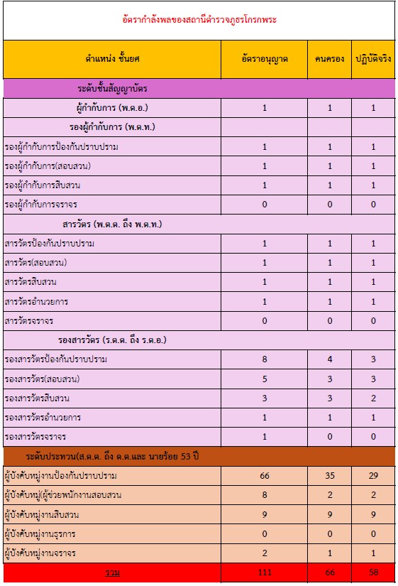 ข้อมูลกำลังพล สถานีตำรวจภูธรโกรกพระ